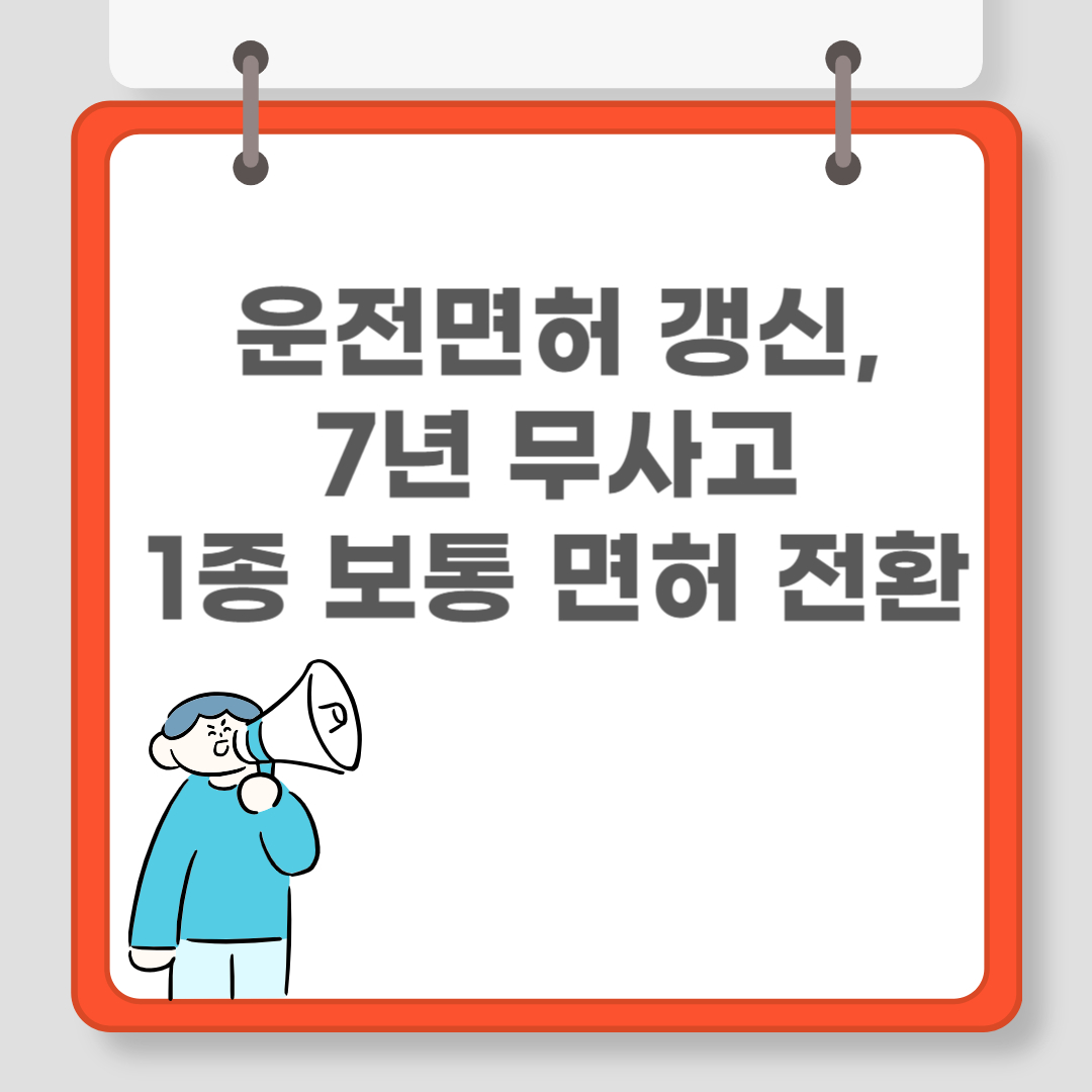 2종 보통 소지자가 최근 7년간 무사고·무벌점이면 시험 없이 1종 보통으로 전환 가능합니다.