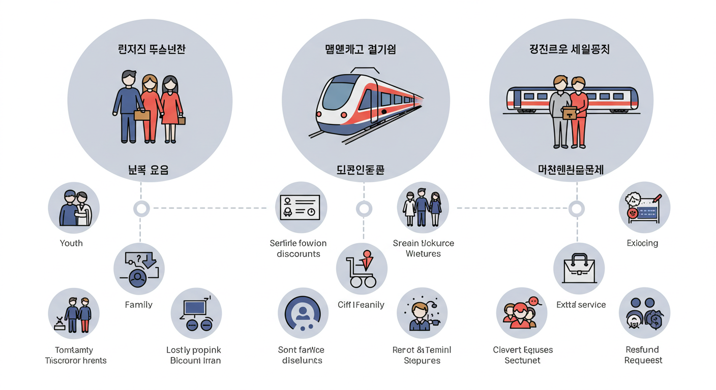 | 맘편한 KTX | 임산부, 영유아 동반 | 최대 50% | 조용칸 지정 및 전용좌석 제공 |